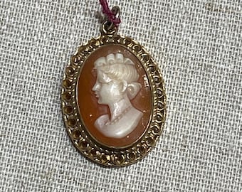 Petite Gold Filled Hand Carved Shell Cameo Pendant